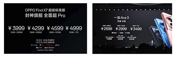 面对低迷且竞争更加激烈的手机市场,OPPO和一加首先选择了降价:OPPO Find X7从3999元起步,比上一代X6直降500元;一加Ace 3从2599元起步,也比上一代Ace 2起步价也降低了200元。