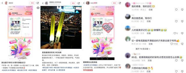 现场气氛热烈,唤起了几代人对于《新白娘子传奇》的美好回忆,不少观众直呼“爷青回”,表达了对青春岁月的深深怀念和对此次演唱会的高度认可。