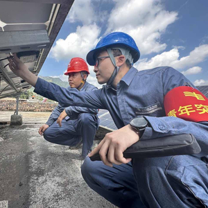 在六盘水盘州市纳木村综合能源示范项目现场,南方电网贵州六盘水盘州供电局党员服务队队员开展安全用电检查。刘菲菲摄