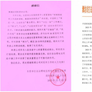 近日,山东联通收到了多封来自各地打击治理电信网络诈骗违法犯罪部门的表扬信,信中对山东联通对公安机关“断卡行动”和反诈案情侦破工作的配合表示肯定。