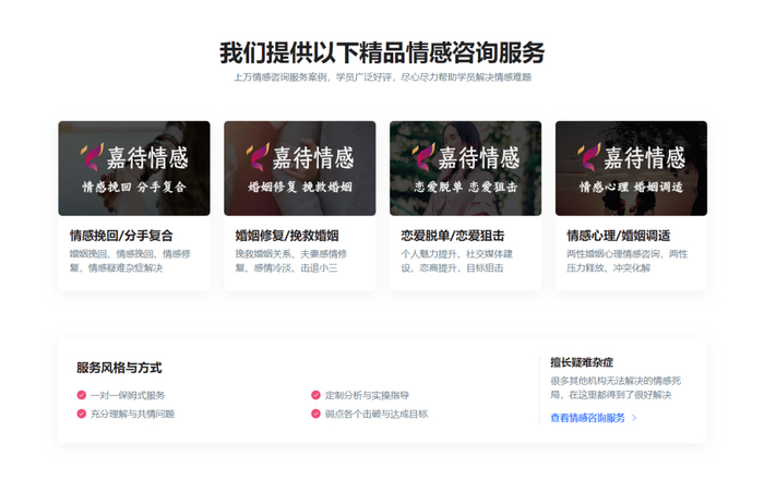 另一方面,嘉待情感的匠心也体现在咨询师的服务方面。