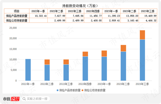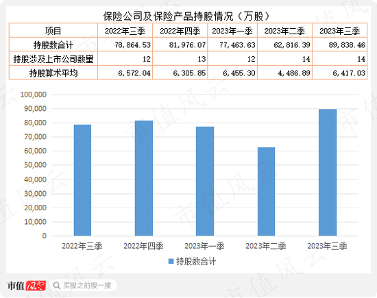 统计数据显示,2023年三季度保险公司及保险产品持有上表公司对应股票数量合计达8.98亿股,较三季度末增加2.7亿股,增幅超过43%。