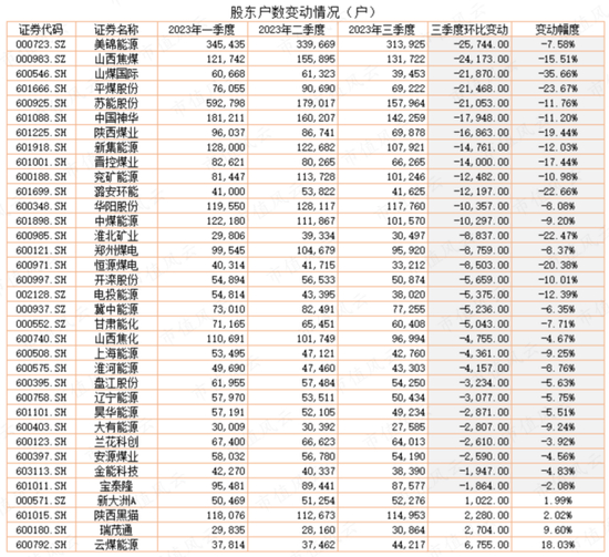 顶级玩家进场扫货,整个煤炭行业股东户数显示减少