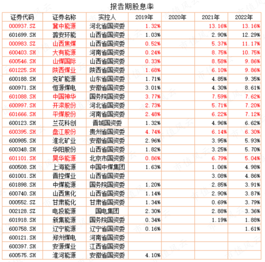 以煤炭行业为例,2022年股息率明显高于2021年;冀中能源、山西焦煤、大有能源等十多家公司连续两年股息率在5%以上;中国神华两年都高于7%。