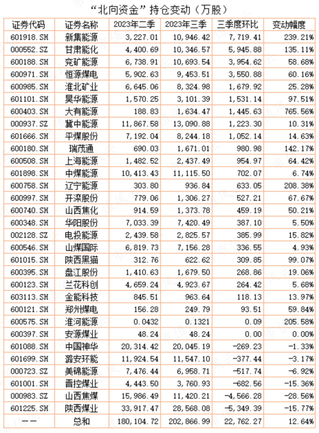 “北向资金”在二季度加仓新集能源、甘肃能化、兖矿能源、恒源煤电、淮北矿业等公司,其中,淮北矿业从2023年9月到12月区间涨幅超过50%。