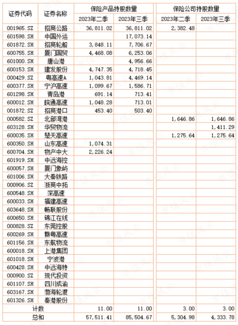 保险公司及保险产品持股较多的是招商公路、中国外运、招商轮船、厦门国贸等。