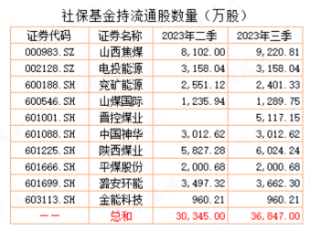 除了保险资金明显加仓煤炭外,社保基金在2023年三季度也加仓煤炭,其中,新进晋控煤业,加仓山西焦煤、陕西煤业,锁仓平煤股份、潞安环能、电投能源等。