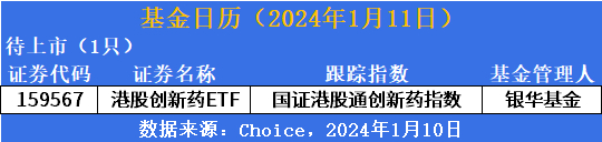 ETF发行市场方面,2024年1月11日共1只ETF上市。