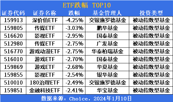 跌幅方面,深价值ETF(159913)领跌4.25%。