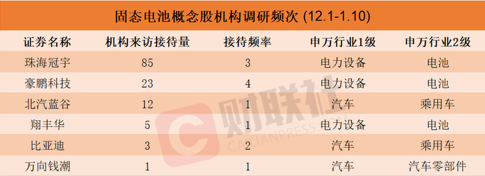 机构密集调研固态电池概念股!龙头4天3板,近1个月接待量居前热门股名单来了