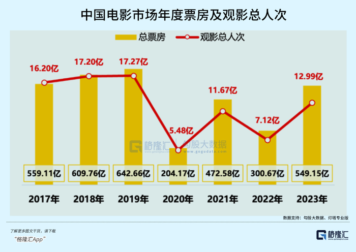 2023年,全年电影票房549.15亿,离550亿还差临门一脚,略逊于2017年,相比2018、2019年的超600亿票房也有着不小的差距,但是相比疫情期间已经有了不小的改观。