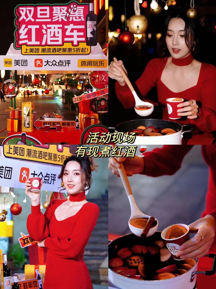 在这一背景之下,具有敏锐洞察力的新潮葡萄酒品牌长城玖,于近期携手美团休闲娱乐,在重庆、上海两大城市的潮流地标组了个“双旦”小【玖】局,以红酒推车和心愿扭蛋机的互动体验,吸引众多都市青年争相打卡,进一步强化了长城玖潮流、时尚、轻松的品牌形象。
