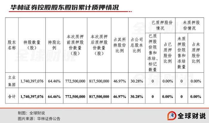 根据企查查信息,深圳立业集团有22条股权质押信息,所质押的股权均是华林证券。