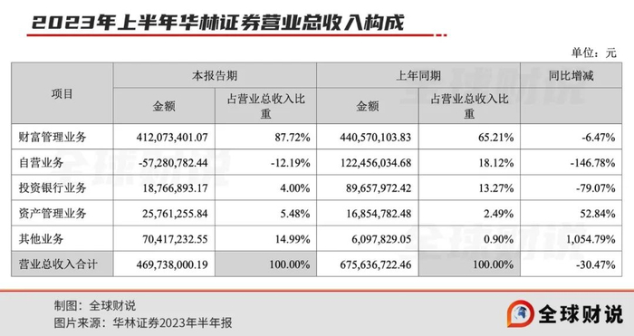 根据华林证券半年报和三季报,该公司自营业务、投行业务、财富管理业务收入均在下降,只有资产管理业务和其他类业务收入在上升。