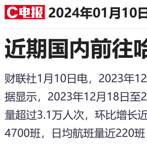 财联社1月10日讯(编辑 笠晨)2024年诞生的首个“顶流”城市,非哈尔滨莫属。松花江上升起了浪漫的热气球、索菲亚大教堂出现了无人机挂上的人造月亮、热心市民出动豪车免费接送游客、饭店里端上了精致摆盘的冻梨和加了糖的豆腐脑……一场文旅热潮席卷“冰城”,游客接待量与旅游总收入双双达到历史峰值。航旅纵横大数据显示,2023年12月18日至2024年1月8日,国内前往哈尔滨的民航旅客量超过69万人次,日均旅客量超过3.1万人次,环比增长近16%,同比增长近72%。