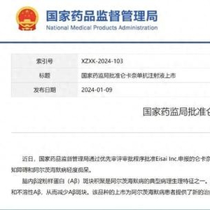 本品是第一种也是目前唯一完全获批的能通过这一作用机制延缓疾病进展、降低认知和功能衰退速度的疗法。继2023年7月在美国获得完全批准、9月在日本获得批准,中国是第三个批准仑卡奈单抗上市的国家。