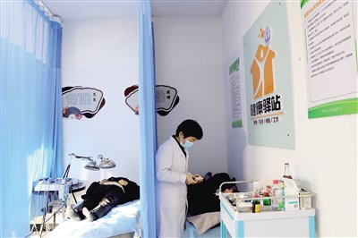 为了让群众在家门口就能享受到优质医疗服务,海勃湾区积极推进健康驿站建设工作,目前,7家健康驿站已投放家庭服务包,选派医护人员入驻,为辖区居民提供常规体格检查,血、尿等实验室检测以及B超、心电图、骨密度检测、幽门螺杆菌检测、皮内注射、肌注、皮下注射、关节腔注射、静脉输液等服务,并且提供常见病以及多发病和慢性病的基本药物。针对行动不便、卧床等特殊人群推行个性化上门服务,可实现上门导尿插管拔管、鼻导管插管拔管、静脉抽血等针对性医疗服务。