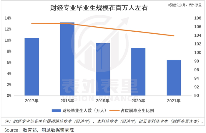 在学生和学校的合谋下,我国财经类毕业生占到应届生数量的10%以上,常年维持在百万人的规模。据此推算,2024年毕业的1179万应届生里,有约110万人是学财经出身的。