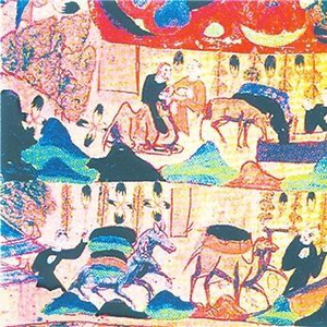 敦煌壁画上河西走廊各民族进行贸易的场景。