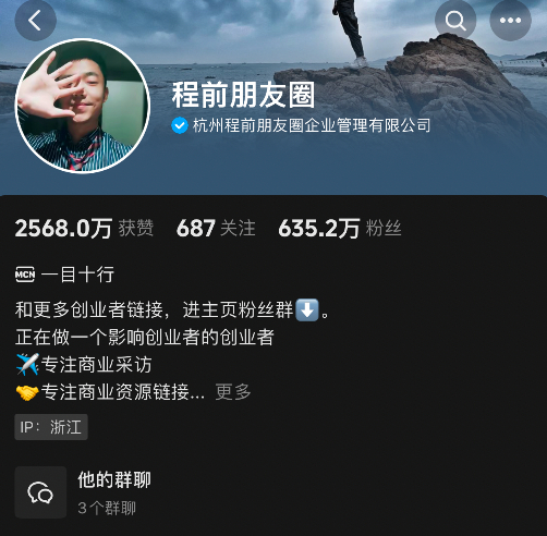 这位在社交媒体上引发“公愤”的博主名叫程前,是一位在商业访谈类赛道做到头部级别的视频博主,目前程前的抖音大号“程前朋友圈”粉丝高达635万。