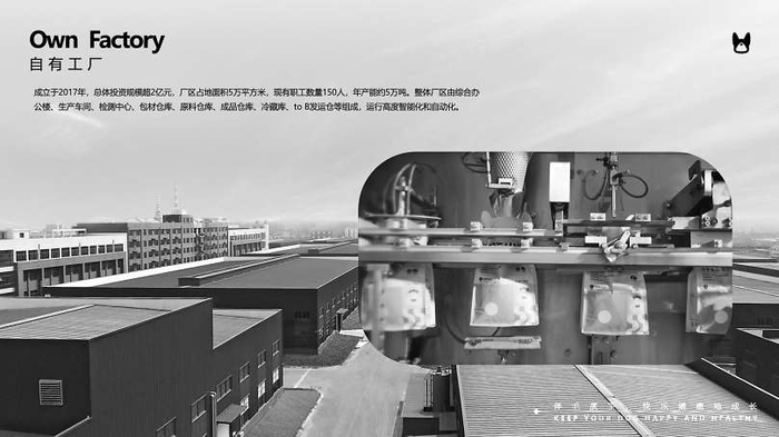 为了控制产品标准,疯狂小狗斥资2个亿打造集团厂区,占地50000平方米,其中智能厂房30000平方米,研发中心1000平方米,从硬件方面,保障了产品的自主创新和生产工艺。此外,还建造了3000平方米的宠物乐园,有许多产品体验官狗狗,产品在进入市场之前,均需进行适口性、耐口性、营养性、功能性饲喂测试。疯狂小狗已通过自建工厂、品质管控体系打好了根基,未来将继续借助技术创新,为宠物经济市场带来更高品质的产品。
