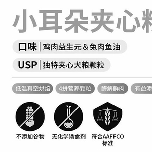 而疯狂小狗这款夹心粮将国内犬粮直接“卷”到了3.0的新时代:这款狗粮采用特殊滚涂的工艺 ,将冻干注入每一粒狗粮中,每一粒狗粮都像“夹心小饼干”,让狗狗每一口都吃到更多肉,这样再挑食的小狗都不会拒绝夹心狗粮!