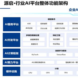 针对企业用户群体痛点,源启·行业AI平台,提供了一个具有AI综合能力的集中化生产和管理工具。该平台涵盖AI算力平台、AI计算框架、AI开发平台以及AI服务平台这四大产品组件,帮助开发人员进行规模化模型开发,实现对模型和资源的统一管理和维护。就具体能力而言主要是以下四方面:
