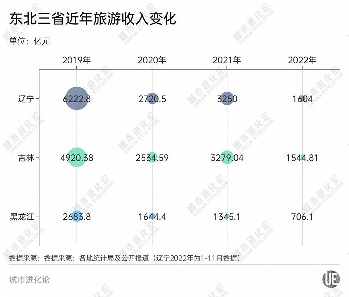 经济与人口的掣肘,使得东北在旅游业发展也较为缓慢。疫情前的2019年,相比起广东、江苏、贵州、四川、山东、云南、浙江及广西等省份旅游收入突破万亿,东北三省却只有千亿。旅游业的发展,同样影响着住宿业,“缓慢”便由此而来。