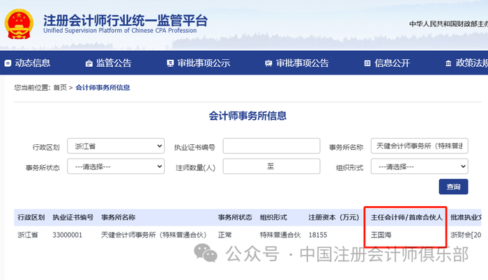 目前,财政部系统内,天健的首席合伙人已更新为王国海。