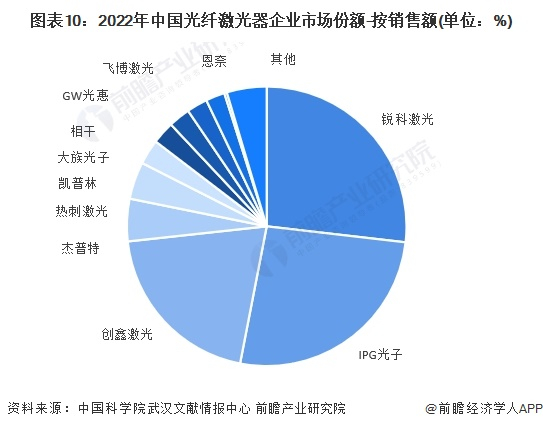 从激光器来看,根据中国科学院武汉文献情报中心发布的数据,2022年中国光纤激光器市场规模约为122.6亿元,占工业激光器的51%。其中,IPG的市场规模继续下降到26.2%,锐科激光上升到26.8%,首次超过IPG,位列中国第一。