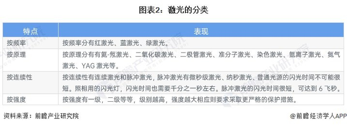 激光可根据频率、发光原理、连续性和强度等进行分类,具体分类如下: