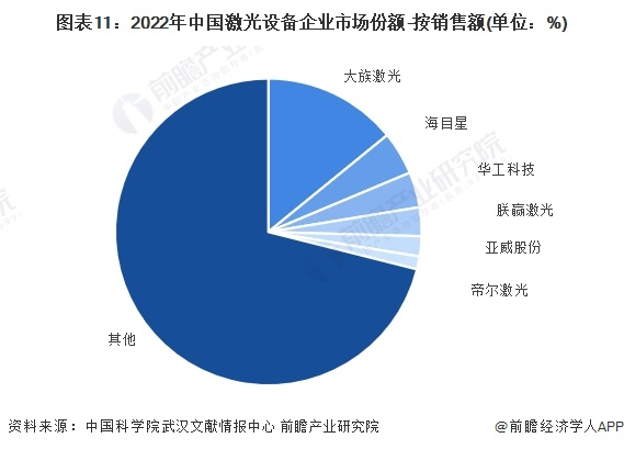 从激光设备来看,2022年大族激光市场份额占比最高,保持龙头地位,占比超14%,其余企业市场份额占比均在5%以下。