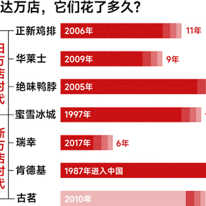 在餐饮行业,“万店”是衡量一家连锁品牌规模的最直接标准,代表单店模型的跑通,也意味着口味普适性和制作工序流程化等基本前提。与更早实现万店规模的餐饮连锁品牌相比,瑞幸和肯德基的万店含金量更高——
