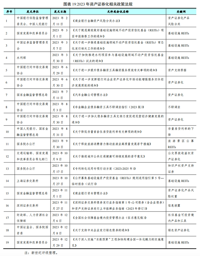 2023年,国家相关部门对资产证券化业务出台了一系列的政策和法规,进一步规范了市场,为此项业务的开展进一步夯实了基础。