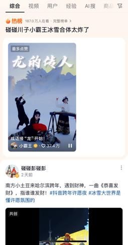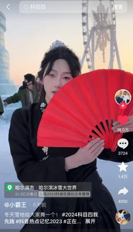在此期间,抖音生活服务联合哈尔滨冰雪大世界、上海、马尔代夫等热门城市、景区花式推荐,其中抖音达人@小霸王 @川子唢呐 @碰碰彭碰彭 在冰雪大世界合体拍摄视频,登上抖音热榜超1400万次播放。