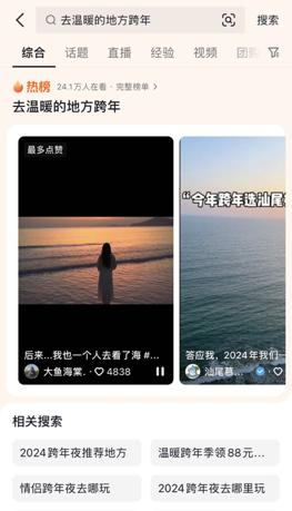 与往年不同的是,今年元旦假期出游呈现明显的年轻化特征,“跨年游”成为年轻人的热门选择。在这个过程中,烟花、灯光、登高等元素成为热门搜索关键词,年轻人正在以不同寻常的方式迎接新年。抖音生活服务“跨年旅行节”,正是通过联合数万家酒旅品牌,发放旅行补贴券包,举办元旦季等特色活动,解锁更多花式跨年游方式。截至目前,#跨年旅行节相关话题播放量已达5.3亿次。
