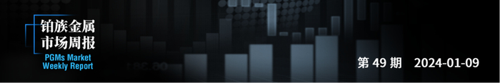 美国12月非农就业数据好于预期,失业率低于预期,3月份降息的概率下降。受此影响,贵金属价格回落。铂价降至940-960美元/盎司区间,钯价降至1050美元/盎司下方。国内自由市场铂日均价累计下降9元至232.5元/克,钯日均价累计下降22元至277元/克。国内自由市场铑价保持1165元/克,铱价保持1330.5元/克,钌价下降2元至100元/克。