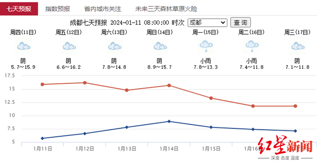 成都大约于16日前后迎来降温