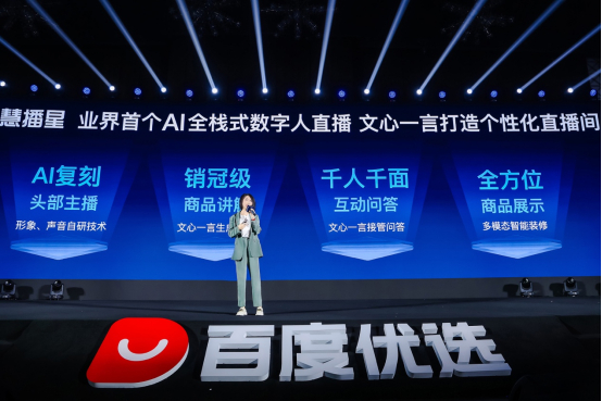 2024年,百度还将启动“慧播星普惠计划”,向百度电商商家开放10万个数字人的免费名额,同时向用户发放1亿元的数字人直播间消费补贴,致力于“让每一个商家拥有一个智能数字人直播间”。