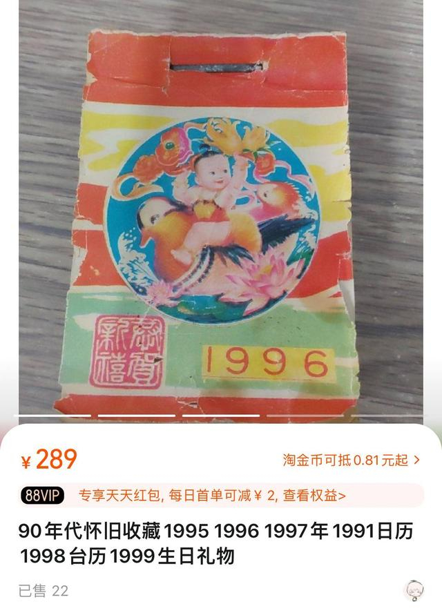 一件1996年“年画娃娃”日历卖289元