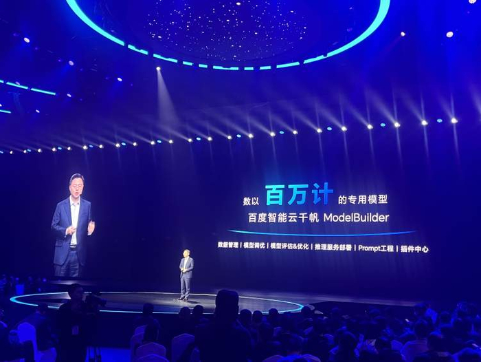 沈抖判断,未来会有数以百万计的专用模型。百度智能云千帆大模型平台上提供了一整套大模型开发的工具链,即千帆“ModelBuilder”,用户在上面就可以很经济、很简单地精调专用模型。目前千帆“ModelBuilder”已累计精调了10000个模型