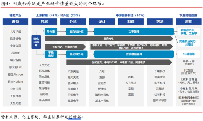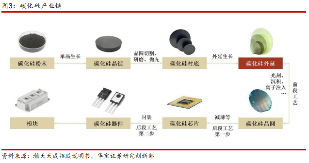 2. 碳化硅产业链包括上游衬底和外延、中游器件、下游应用