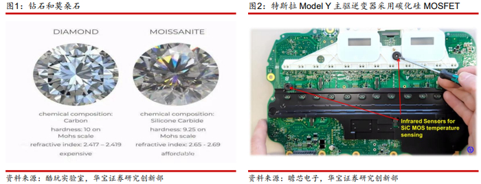 纵观半导体材料发展历史,碳化硅并不是新鲜概念。碳化硅作为材料已有百年历史,商业化也已超过30多年。1824年,瑞典科学家(Berzelius)在人工合成金刚石的实验中意外发现了碳化硅这一物质,其硬度比钻石小但光彩更亮;1893年,科学家亨利·莫桑在陨石中发现了天然的碳化硅,这种矿物被命名为莫桑石,并因此获得了1904年的诺贝尔化学奖;1955年,LELY提出生长高品质碳化硅的方法,从此将碳化硅作为重要的电子材料;1987年,科锐第一个实现了碳化硅的商用,制造了出世界上第一块商用碳化硅衬底,并把它应用在LED领域;2001年,英飞凌和科锐分别推出首款小型碳化硅肖特基二极管;2011年,科锐推出首款商用碳化硅功率MOSFET。而碳化硅被正式引爆获得广泛关注的是2018年,马斯克首次宣布在特斯拉Model 3的主驱逆变器里使用碳化硅MOSFET以替代传统的硅基IGBT,奠定了碳化硅“上车”的里程碑。此后,比亚迪、小鹏、吉利纷纷效仿,开始布局碳化硅器件。