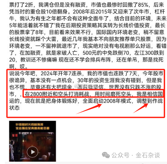 他点评当前A股市场:世界没有只跌不涨的股市,在2800附近和空头打消耗战,用时间磨死空头,相信国运,现在就是把身体锻炼好,调整到作战状态。