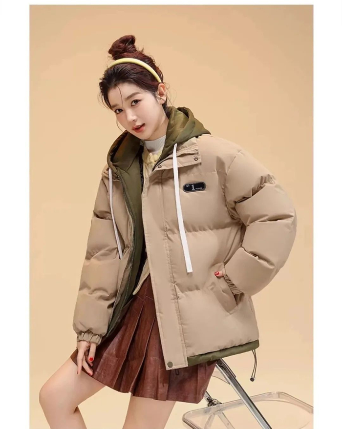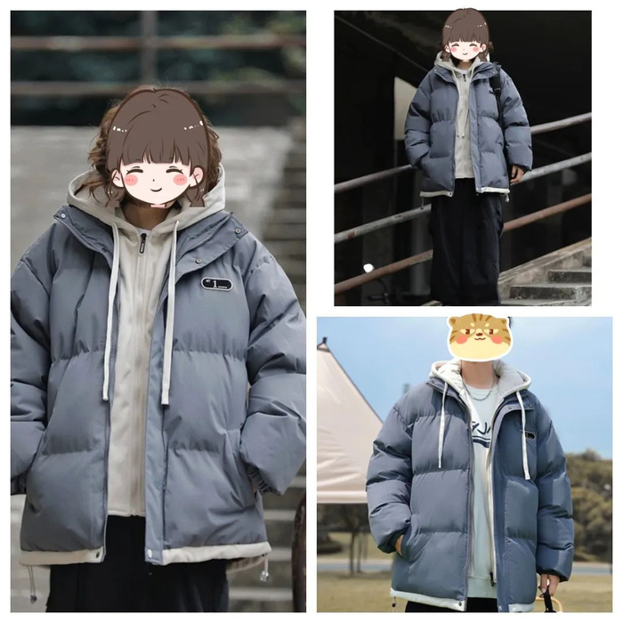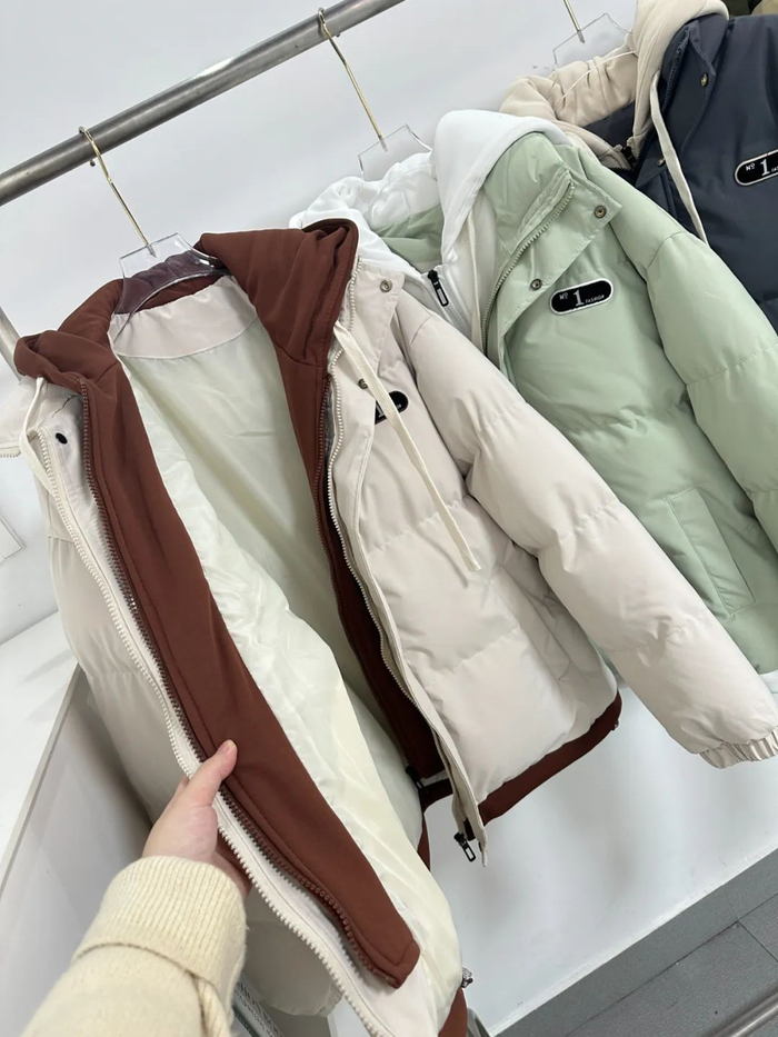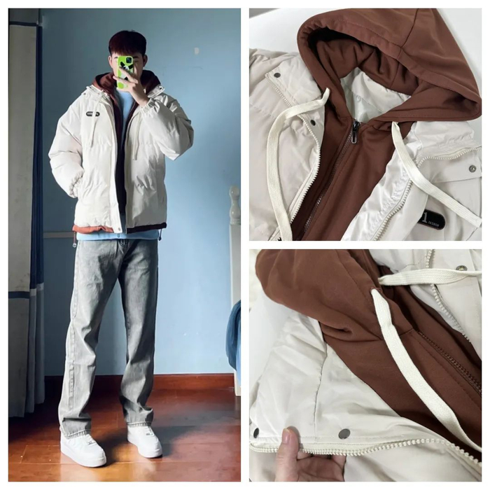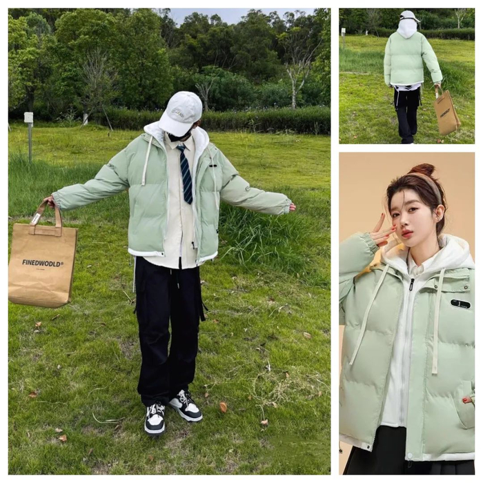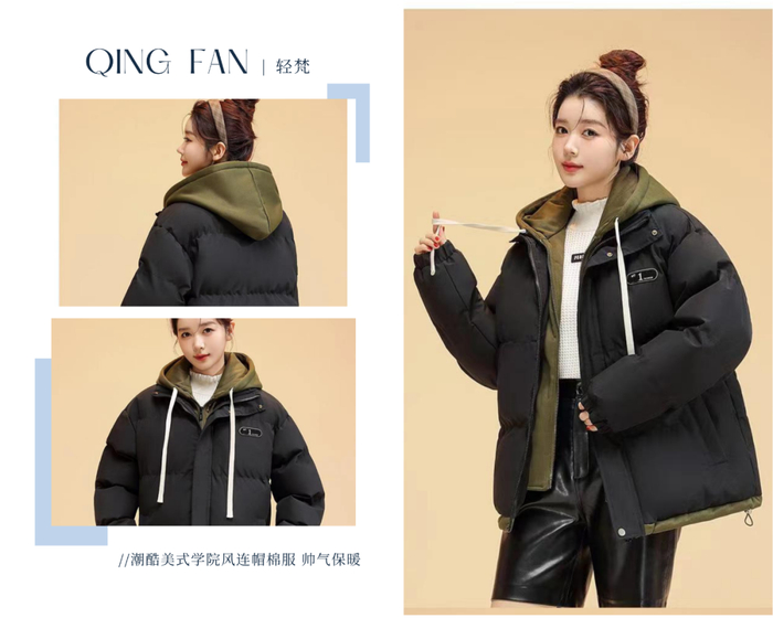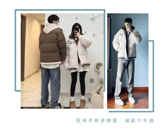 棉服+连帽卫衣假两件套设计,丰富穿衣层次感,告别枯燥单一的两件套穿搭。