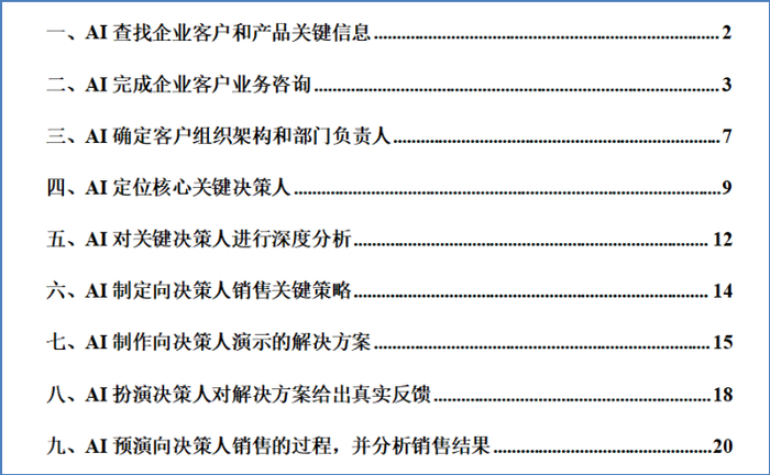 在辅导某企业的过程中,我们通过ChatGPT-4和New Bing,两个核心的AI工具,通过预训练、正确的指令、互动式的AI回答,完成了有关大客户的销售流程,制定了正确的销售策略,完成了大客户销售中的9个关键环节。包括,AI查找企业客户和产品的关键信息,完成了对客户的业务咨询,并以业务专家的立场,给出了客户业务解决方案,在此基础上,完成了咨询型销售的完整过程。