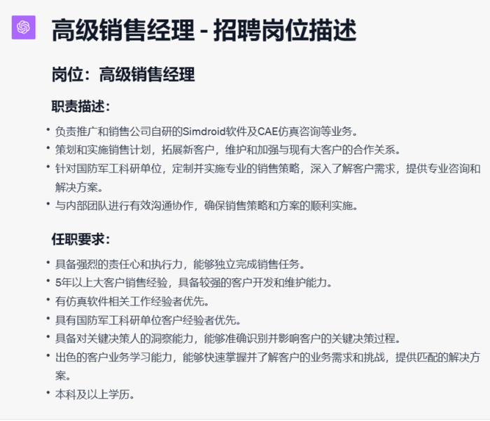 比如,AI自动生成JD: