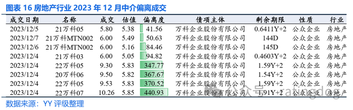 房地产行业方面,本月发生多笔高估值偏离的中介成交,均为万科的成交。