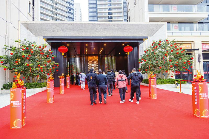 锣鼓喧天,双狮起舞,红毯铺地,迎宾美陈,灯笼红艳……作为五象出圈的江景项目,星海银沙自推出就一直受到市场广泛关注,1月5日迎来首批次交付。