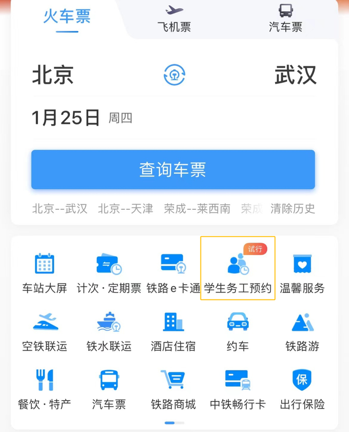 10日起,铁路12306App为学生、务工人员推出预约售票服务专区。